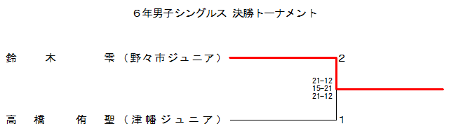 | 6BS-1 | 野々市Jr. | 鈴木 雫 | 2 | 21-12 15-21 21-12 | 1 | 高橋 侑聖 | 津幡Jr. | |